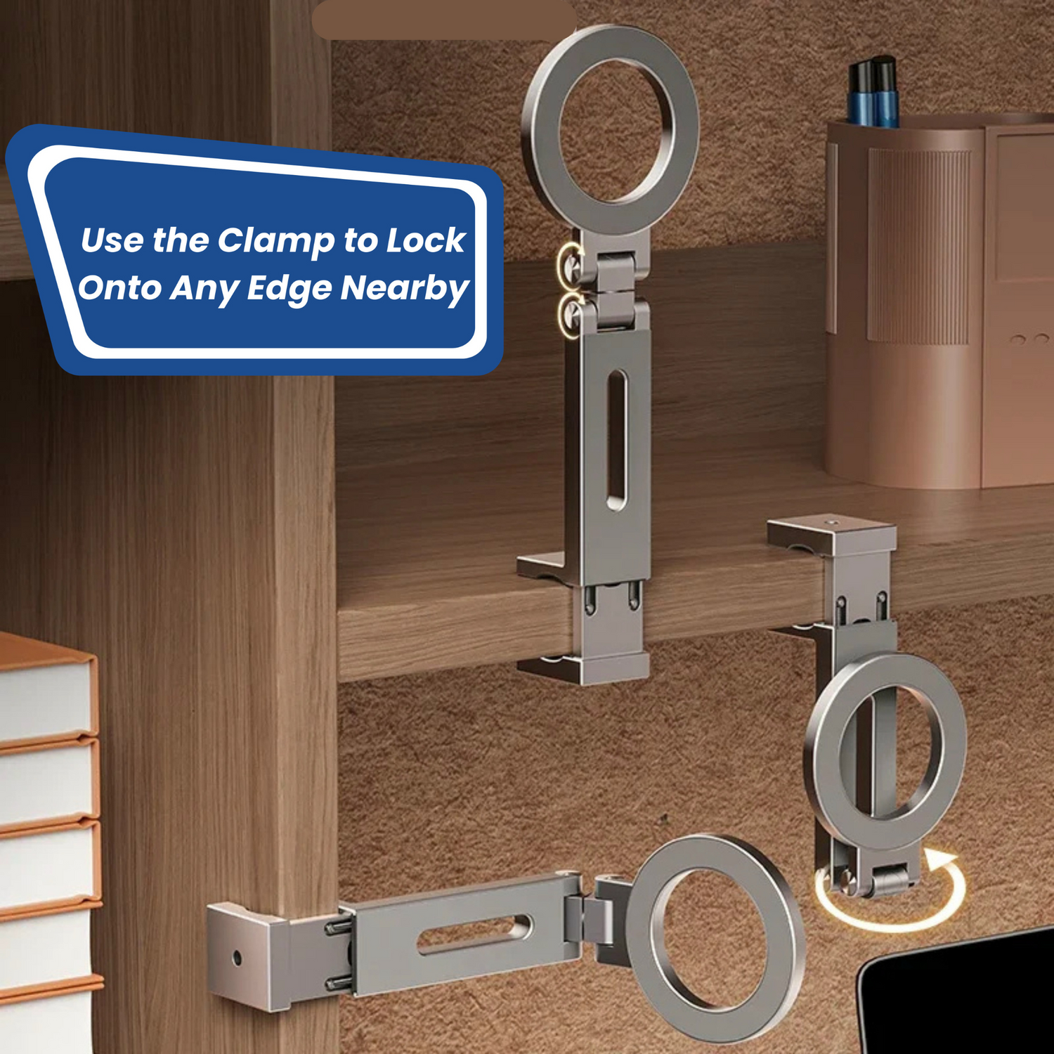 The Tripod Pro is built to stay steady during every use. Its all-metal structure and stable base keep your phone secure on desks, counters, or any surface. It also includes a built-in clamp that attaches securely to tabletops or shelves, adding extra stability when you need it most. Whether you're filming or live-streaming, your phone stays exactly where you set it.